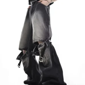 Spliced Jeans With Old Zippers, High Street Insets, Trendy Gradient Straight Tube Loose Wide Leg Pants, Children’s Jeans