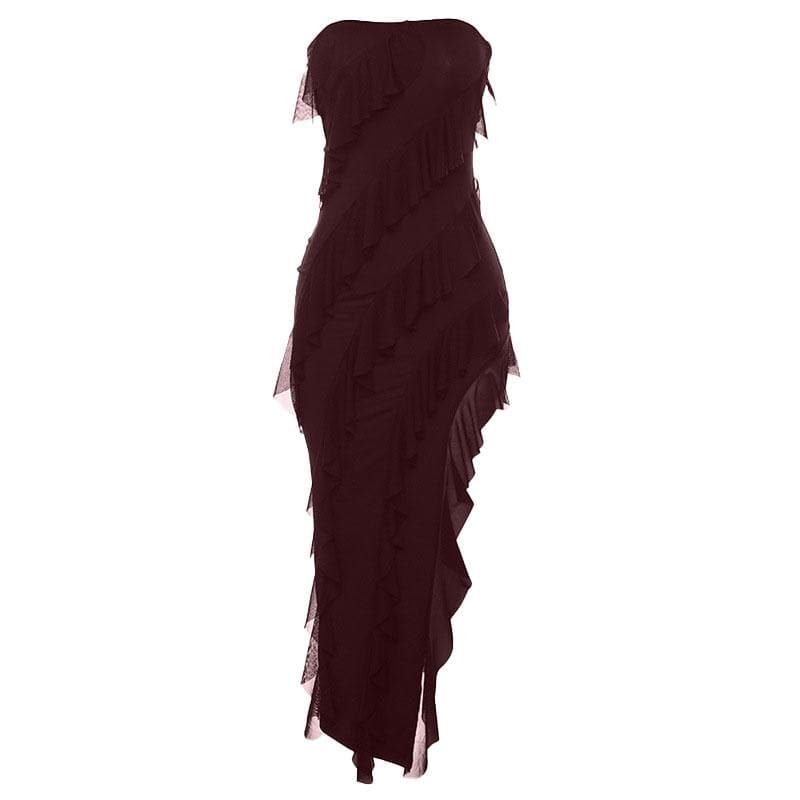 Be the first to review “Irregular backless solid ruffle slit tube midi dress”